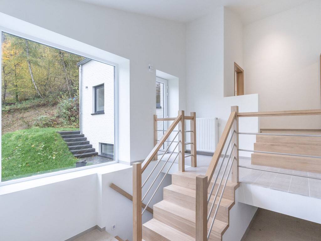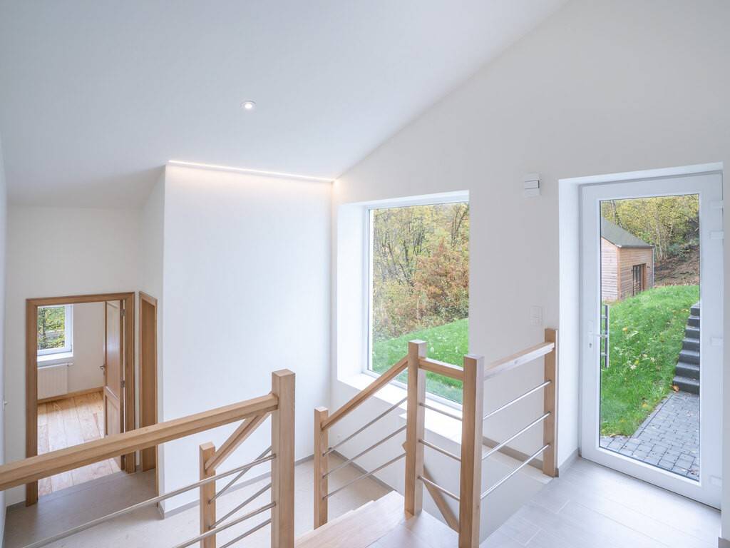 Modern, bright, and spread over several levels, the property offers breathtaking views over the valley while enjoying quick access to the town center and major road connections (E25).