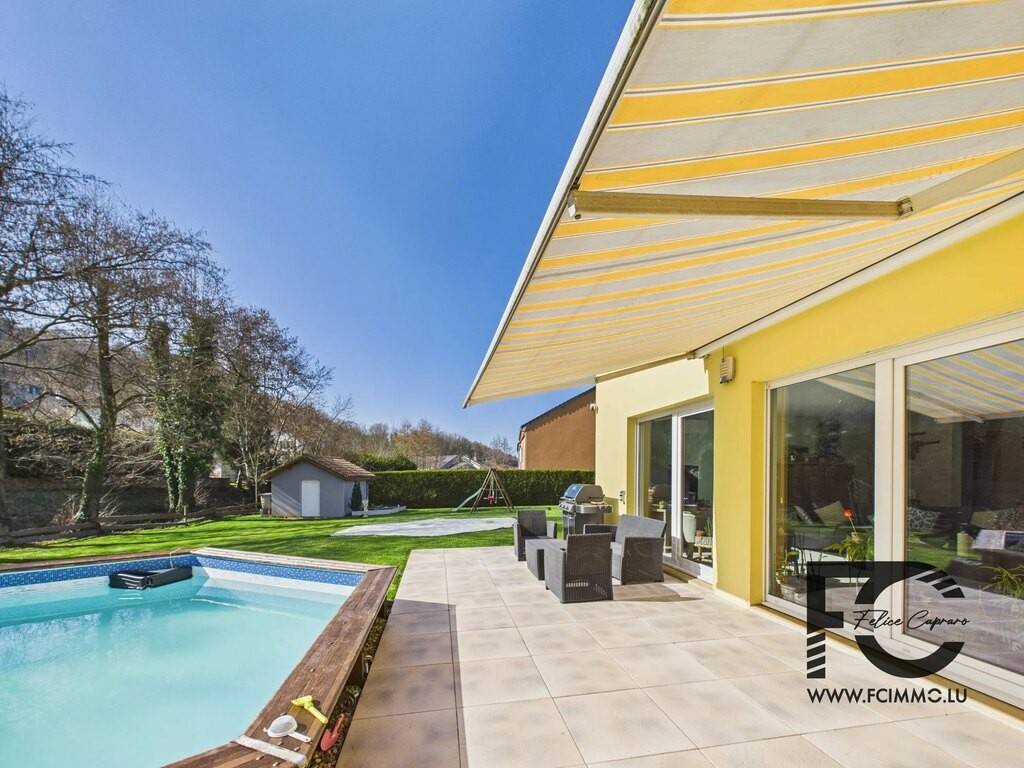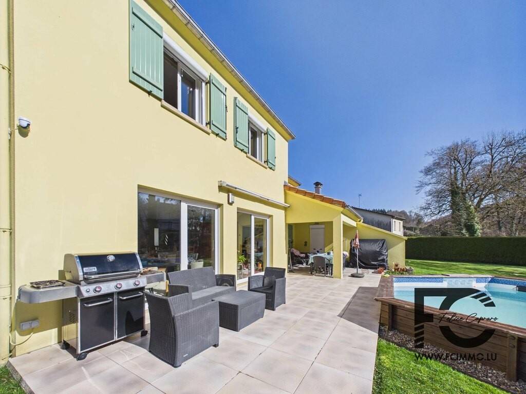 Single-family house with 4 facades – 217 m² – Land 13.28 ares – No vis-à-vis FCIMMO, represented by Manuel Capraro, offers you exclusively this superb 4-facade detached house, located in Vaux-Warnimont, in a quiet and sought-after residential environment. Built in 2001 and perfectly maintained, this property offers a living area of approximately 217 m² (250 m² gross), with generous volumes and exceptional brightness. Composition Ground floor Entrance hall with separate WC Spacious living room of 68 m², bright (south-facing) Equipped kitchen of 22 m² with direct access to the garden Garage of 36 m² Laundry room of 13 m² Multipurpose room of 12 m² (storage / office / hobby) Bedroom of 13 m² with dressing area Bathroom of 10 m² First floor Large open space of 42 m² (playroom / office / sleeping area) 2 bedrooms of 15 m² Bathroom of 10 m² Separate WC Exteriors Land of 13.28 ares (1328 m²) Pleasant garden Terrace Above-ground pool No vis-à-vis → guaranteed calm and privacy Facade and roof in excellent condition. Location Vaux-Warnimont is a peaceful and family-friendly municipality, ideal for those seeking calm and greenery. A few minutes from Longwy and the Luxembourg border, perfect for cross-border workers. Highlights of the property 4 facades Very large volumes Optimal brightness No vis-à-vis Proximity to Luxembourg Contact Manuel Capraro – FCIMMO Sale Details - Agency fees at the expense: Not communicated - Monthly charges: 1320.00 € - Surface du terrain: 13.28 ares Reference agence: APM:9543898-86791988