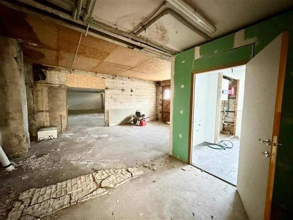 Le rez-de-chaussée offre un vaste espace commercial bénéficiant d’une excellente visibilité, idéal pour une activité commerciale ou professionnelle. L’étage, quant à lui, peut accueillir différents types d’aménagements : bureaux, espaces professionnels ou encore la création d’appartements, sous réserve de l’obtention d’un nouveau permis d’urbanisme. À l’arrière du bâtiment, un important volume de stockage latéral complète l’ensemble. Cet espace constitue un véritable atout pour une activité commerciale, artisanale ou logistique, permettant d’y installer un atelier, une zone de stockage ou tout autre espace fonctionnel. Le bien dispose également d’un parking (7-8 voitures), apportant une facilité d’accès appréciable pour la clientèle ou les collaborateurs.