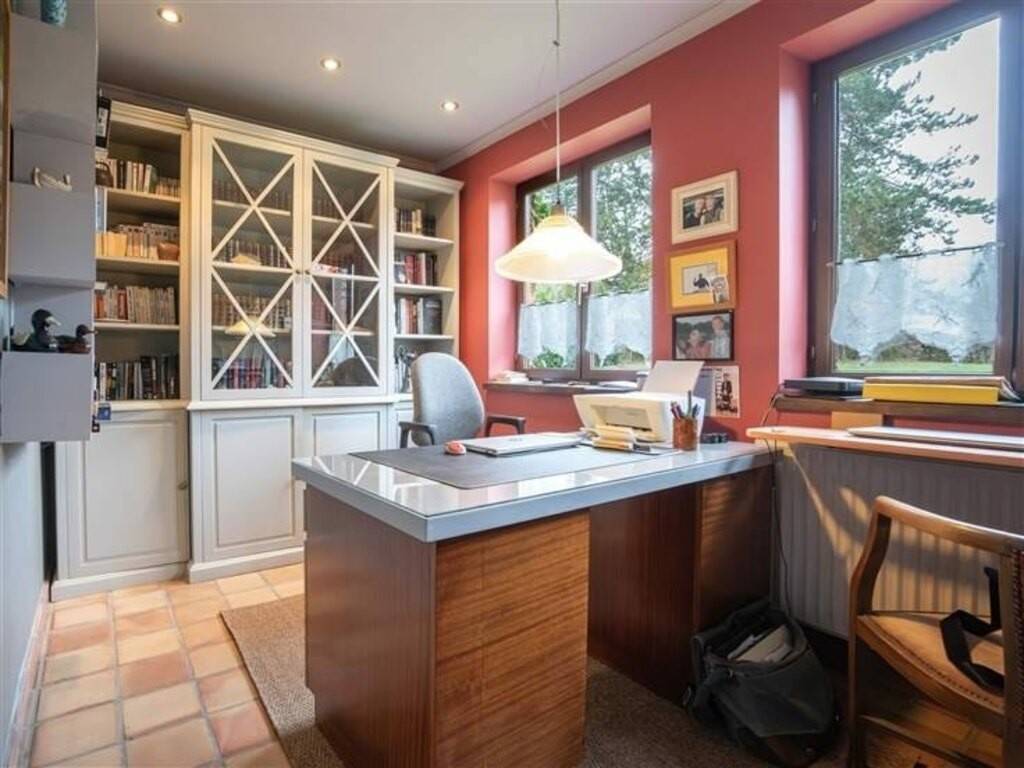 Édifiée en 1982 sur une parcelle de plus de 72 ares, cette villa bénéficie d’un emplacement privilégié offrant une vue imprenable sur le Château de Vêves, véritable joyau architectural. L’habitation propose un confort de plain-pied particulièrement recherché, agrémenté d’une luminosité abondante et d’une configuration harmonieuse. Elle se compose au rez-de-chaussée d’un hall de distribution avec WC indépendant, d’un salon, d’une salle à manger avec cuisine et arrière-cuisine, d’une véranda chauffée, d’un bureau, d’une chambre avec salle de bains privative, d’une buanderie ainsi que d’un double garage. L’étage dispose d’un hall de nuit, de trois chambres, d’une petite salle de bains, d’un WC et d’un grenier de rangement. Une cave complète le niveau inférieur. Le bien a récemment bénéficié d’améliorations énergétiques, notamment l’installation de panneaux photovoltaïques et d’un ballon thermodynamique.