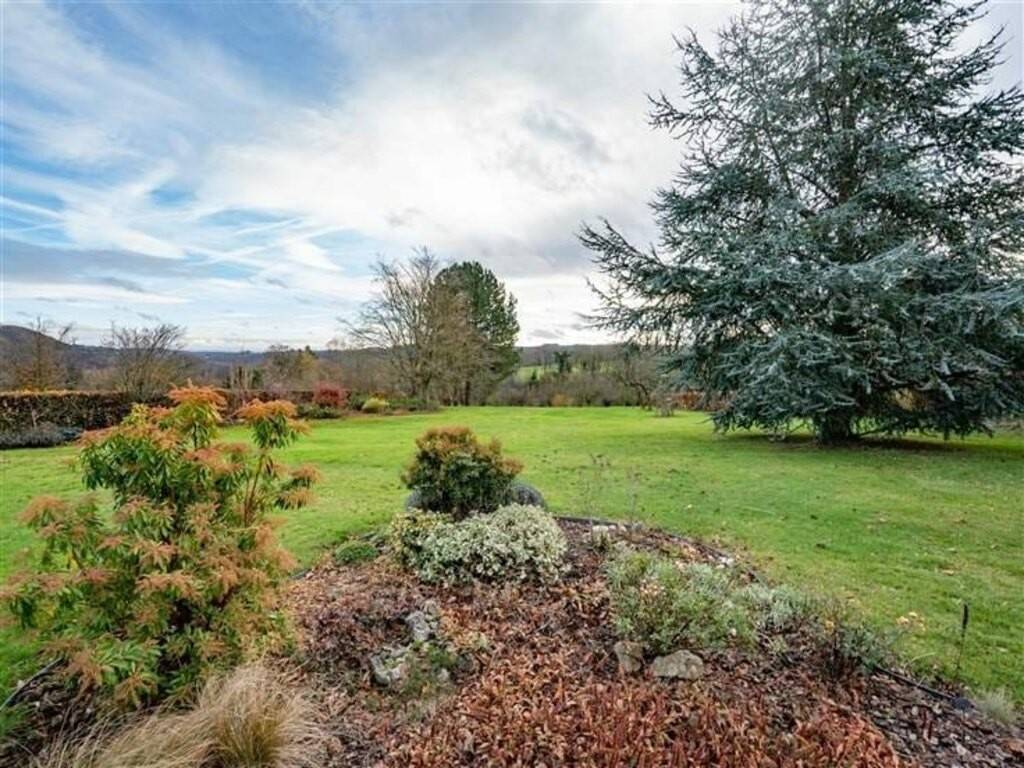 Les extérieurs offrent un cadre naturel remarquable : un vaste jardin arboré, équipé d’un robot tondeuse, une serre, un espace potager, le tout profitant d’une vue dégagée sur les environs boisés. Cette pr