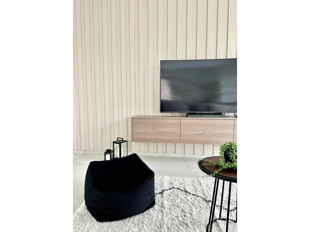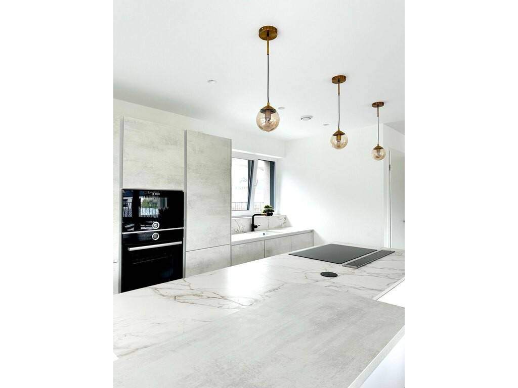 - une lumineuse cuisine ouverte ; entièrement équipée donnant sur un spacieux salon qui donne accès à la terrasse par des portes coulissantes en verre.