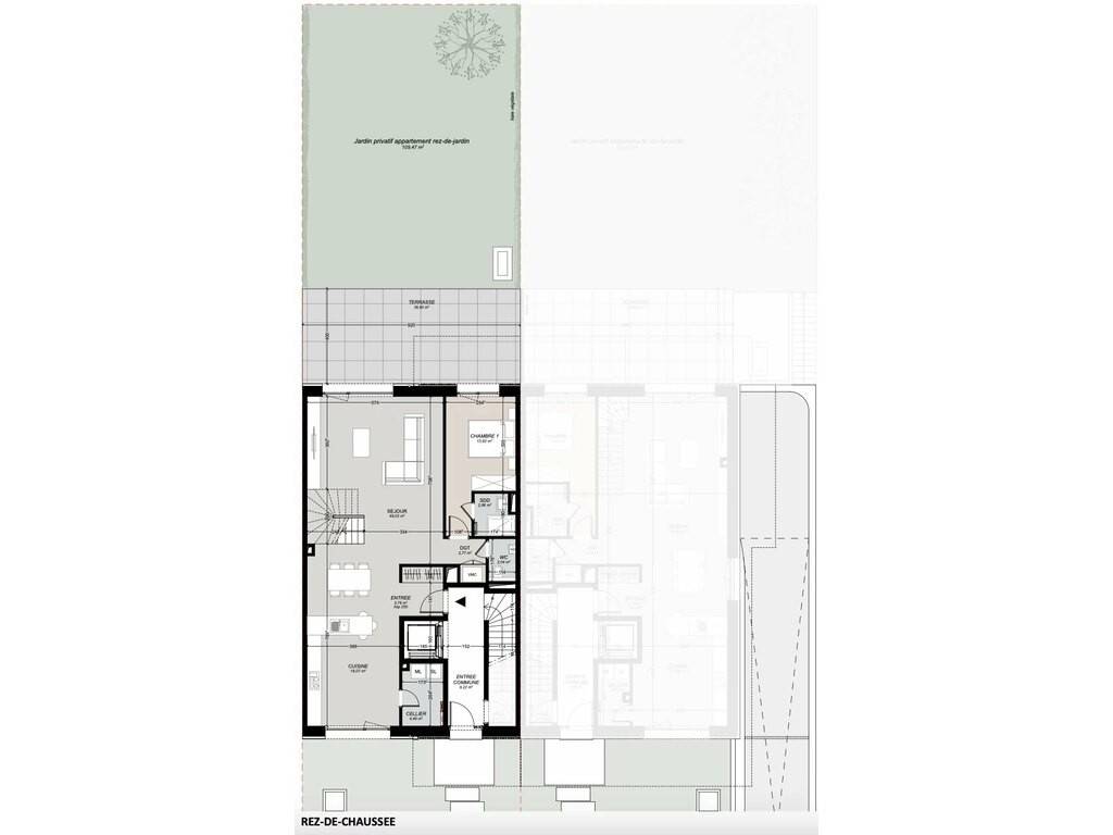 - Entrance hall - 49 m² living and dining room with access to the 36 m² terrace and 109 m² garden - 2 bedrooms - 2 bathrooms - Separate WC - Laundry room
