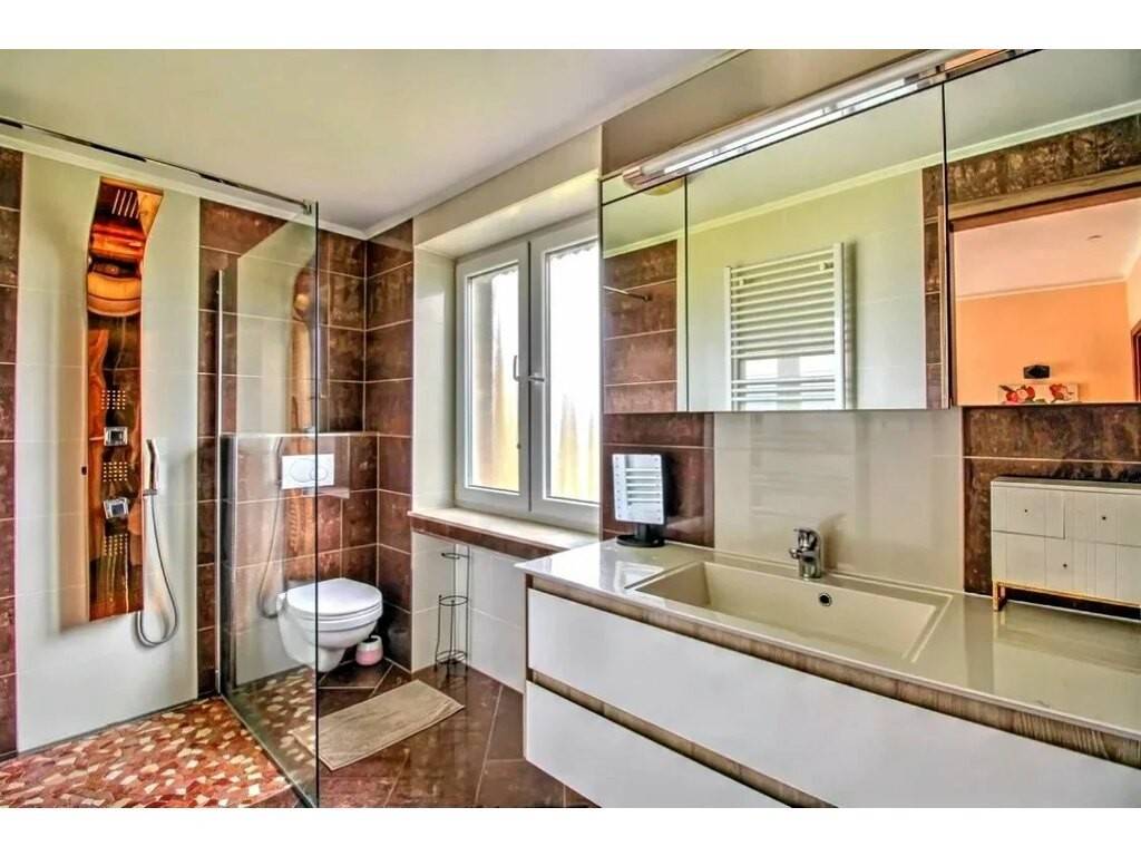 Le rez-de-jardin comprend un garage, une buanderie, une salle de douche, ainsi qu'une cuisine d'été, avec accès à la terrasse et au jardin.