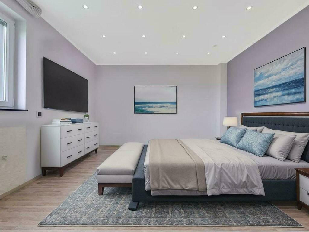 - A 43m² master suite (18m² bedroom), with a 7.7m² made-to-measure dressing room and a 17m² bathroom with Italian shower, bidet WC and connections for a bath or jacuzzi or laundry room, in short, it's up to your imagination (the bath in the photo is a suggestion).