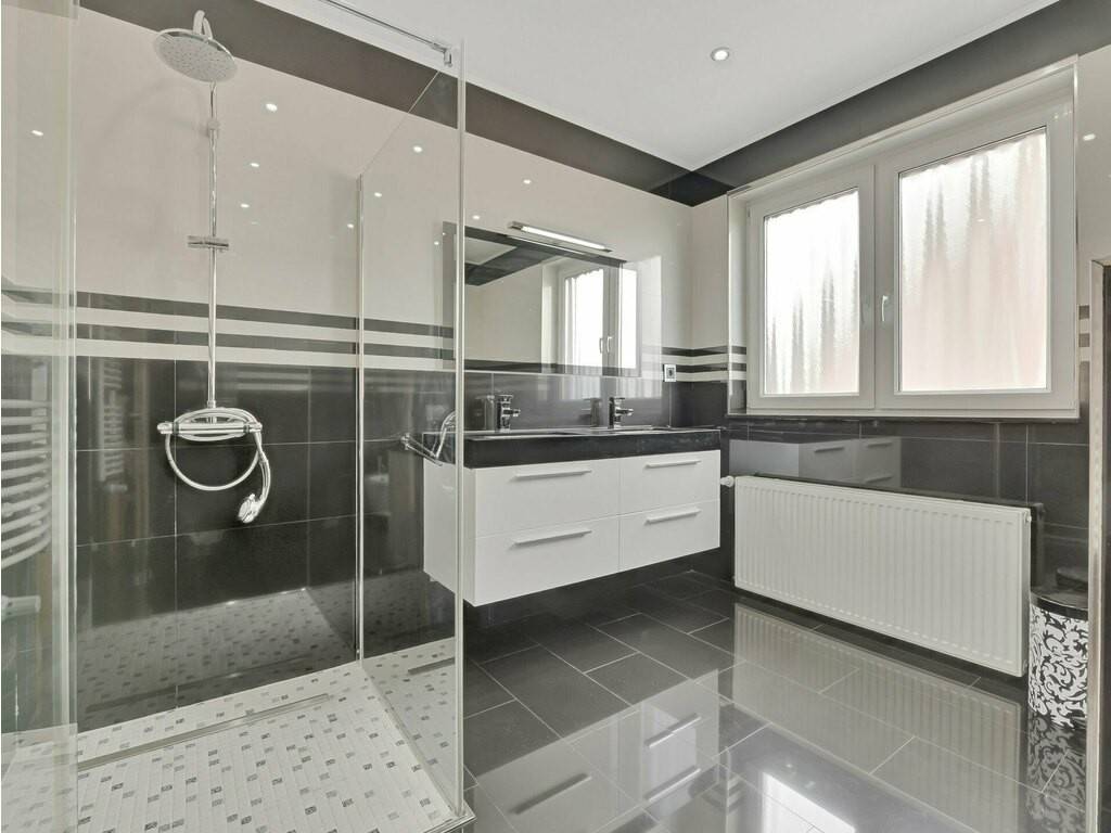- 2 chambres (±19 et 21m2) avec salle de douche pour l'une et de bain à remous et douche pour l'autre., bien sûr avec WC.