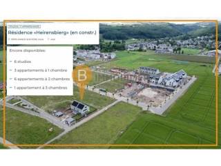 dès € 387 654Appartements et Maisons jumelées / mitoyennes dans programme neuf à Erpeldange-sur-SûreNouvelle résidence «Heirensbierg» à construire à Erpeldange 9 studios 7 appartements à 1 chambre 11 appartements à 2 chambres 2 appartements à 3 chambres Terrasses Jardins privatifs Balcons Caves privatives Emplacements intérieurs privatifs Garages intérieurs privatifs Ascenceurs Pour plus d’informations, veuillez contacter : Monsieur Daniel VAZ : GSM + 352 621 757 809 E-mail : daniel.vaz@fischbach.lu -- Situation La résidence «Heirensbierg» se situe à Erpeldange-sur-Sûre, 6/8, rue Dr Louise Welter dans le nouveau lotissement «In der mittelsten Gewan». Elle sera implantée sur un terrain d