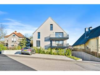 € 950 000Duplex 21, Rue de Steinfort, Hobscheid, HabschtA Hobscheid nous vous présentons ce beau duplex avec 3 chambres (chacune bénéficiant d'une salle de bains en suite) dans une petite résidence de 4 unités. Le bien (152m2 surface au sol) étant en parfait état (construction 2019, aucune rénovation, ni réparation à prévoir) est prêt à être emménagé. Vous serez ravis par la luminosité, les beaux espaces (chambres spacieuses, portes 2m10 de hauteur) et ses belles finitions (triple vitrage, chauffage au sol partout, pompe à chaleur). Le duplex se compose comme suit: Au premier étage: - Hall d'entrée avec espace vestiaire - Séjour/cuisine avec balcon