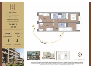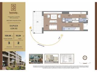 € 1 150 000Duplex 21A, Avenue John F. Kennedy, Kirchberg, LuxembourgDécouvrez ce duplex de 129,26 m² habitables situé à Kirchberg, agrémenté d'une loggia de 15,29 m2 qui donne sur le séjour. Le premier étage est dédié aux pièces à vivre avec le hall d'entrée qui donne accès au double séjour, à la cuisine. Il est agrémenté d'un débarras et d'un w.c. séparé. L'espace nuit est à l'étage supérieur avec 2 chambres, une salle de bains, un w.c. séparé et une chambre parentale avec salle de douche. Les résidents ont accès à une salle de fitness, à une terrasse commune en haut de l'immeuble et une coursive à l'entrée pour se détendre. Chaque appartement bénéfici