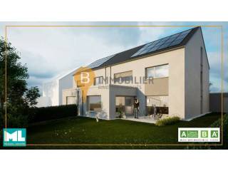 € 1 164 000Maison jumelée / mitoyenne 150 m², neuve, Erpeldange-sur-Sûre Localité, Erpeldange-sur-SûreLA Immo vous propose cette belle maison unifamiliale jumelée, en future construction, à basse énergie, située sur un terrain de 5,38 ares à Erpeldange-sur-Sûre, dans la future capitale du Nord, la Nordstad, au Nord du Luxembourg, proche du centre géographique du Grand-Duché du Luxembourg. La maison est dotée d'une architecture moderne et offre une surface habitable nette de 150 m2. Au rez-de-chaussée se trouve: - le hall d'entrée - une buanderie - un WC séparé - un local compteurs/vélo - la cuisine ouverte sur le séjour et la salle à manger, donnant accès à la terrasses ainsi