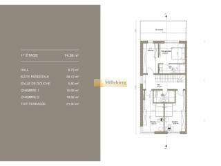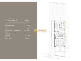 € 1 156 800Maison individuelle 149 m², neuve, Mondorf-les-Bains Localité, Mondorf-les-BainsNouveau projet situé au calme, à 1 km des Thermes et du parc, et à 600 m du centre. Maison d'une surface habitable de 149 m², complétée par 87 m² de garages et deux terrasses de 21 m² chacune. La maison se compose d'un séjour avec cuisine ouverte de 45 m², d'un WC séparé, d'une suite parentale de 28 m², de deux chambres de 15 m² et 16 m², ainsi que de deux salles de bains. Le terrain, de forme rectangulaire, a une superficie de 3,44 ares. Des modifications des plans sont encore possibles. Un sous-sol (cave) peut également être ajouté en option. Sale Details - Honoraires à la charge: Non co