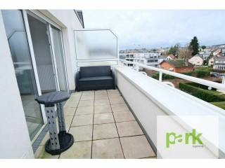 € 1 165 000Penthouse 129 m² avec terrasse, Fentange, HesperangeTrès beau penthouse de 2001 (constructeur STUGALUX) en excellent état avec 3 chambres à coucher et 2 places de parking intérieurs; 3 belles terrasses de 28 m²; situation très calme proche de toutes les commodités diverses de la vie courante. Autres atouts : volets roulants électriques (vélux de 2022); climatisation dans chambre principale (2023), terrasse principale avec marquise, protection anti insectes. Composition du penthouse d'une surface habitable de +/- 129.83 m² et de 3 terrasses de 28 m²: sous-sol : 2 emplacements intérieurs (10 m² + 34 m²), cave (3.51 m²); 3e étage : hall d'ent